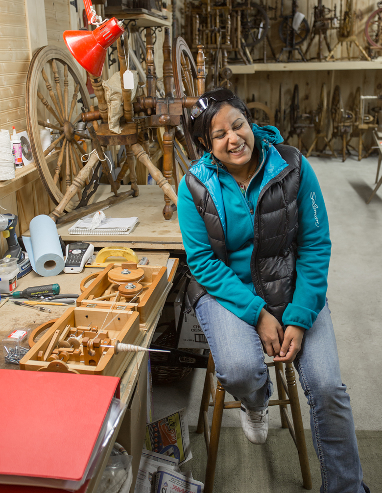 This is Laurie. She’s a hoot. She’s sweet, friendly, enthusiastic, irreverent and we adored her instantly. She not only had weaving looms (something I’ve been craving for a while) but she bade me take off my jacket, sit down and actually weave a few inches while she talked through the features of the loom I ended up buying – the 20” Knitters loom from Ashford. It should arrive in a week or two!