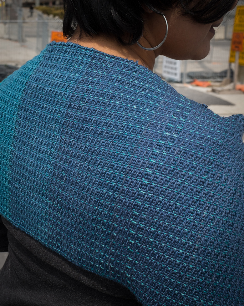 The result is light and silky with beautiful drape. I’m using a pick up stick technique to add a little texture. It’s just warm enough to use as a springtime wrap, I’m in love!