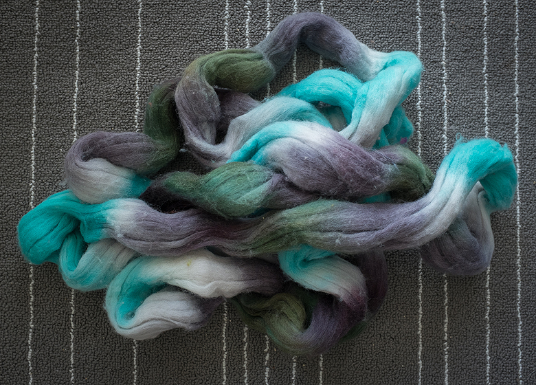 A few months ago, Rayna picked up a massive stash of fiber from someone who had opted to get rid of, literally, a garbage bag full of the stuff. She was going through it and held up a braid and declared that she would likely never spin it up. I said ‘I would!’ and Rayna said ‘It’s yours then’ because Rayna is like that.