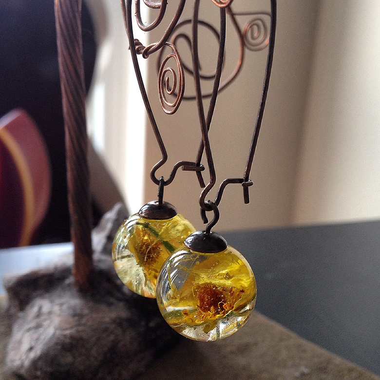 Early this morning, I did my FINAL POUR for this weekends art show, Art in the Vineyard at Frogpond Farms. Tito and I went through 12 cases of resin, poured roughly every 8-10 hours for 3 weeks and produced 65 pieces of jewellery for sale at the show. On top of that, Tito spent countless hours in our ‘studio’ (er, 8ft x 6ft den) cutting, shaping, soldering and filing copper and brass bezels.