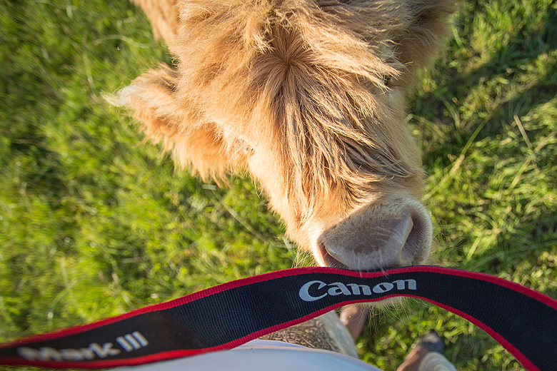 This. This here is proof of how much I love Kim’s cows. The cats don’t get away with coming near my gear, never mind trying to eat the strap!
