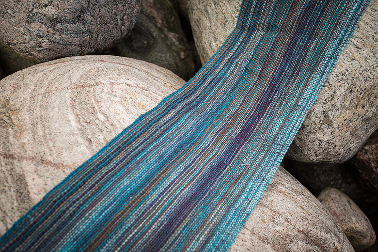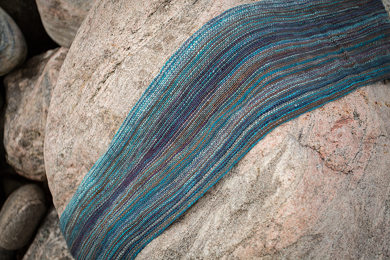 Feeling pretty happy with it :) It’s about 60″ long and super warm. The Navajo plying really lends itself to warp threads; the longer colour runs really show off in the final piece. I am using a charcoal coloured lace weight weft.