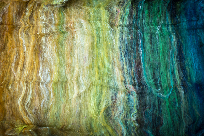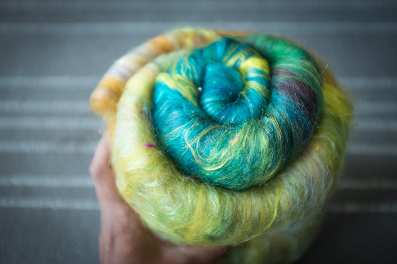 Rayna and I received these batts a few days ago, from my friend, the incredibly talented Mother Macrina! She dyes fiber for her Etsy store, Inglenook Fibers, and her work is unbelievably beautiful. I could print pictures of her unfolded batts and put them on the wall – that’s how pretty they are! Can’t wait to spin one up :)