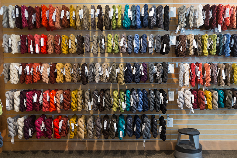 The store has a very warm atmosphere, with a big knitting table at one side and a fabulous selection. The staff are super friendly and showed me around the brands that were local to them, as well as an entire wall of Shibui, which is their sister company.