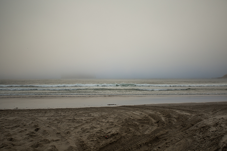 Here’s an example of how bad the fog was; there is an iconic rock formation on this beach called the haystack. It’s no tin-of-biscuits either; it’s 330 feet tall. I walked around like a tourist inquiring of people where I could find the haystack rock, only to have them look out to sea and offer me a friendly, noncommittal shrug.