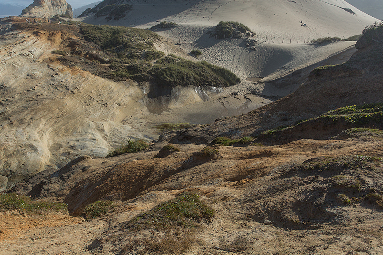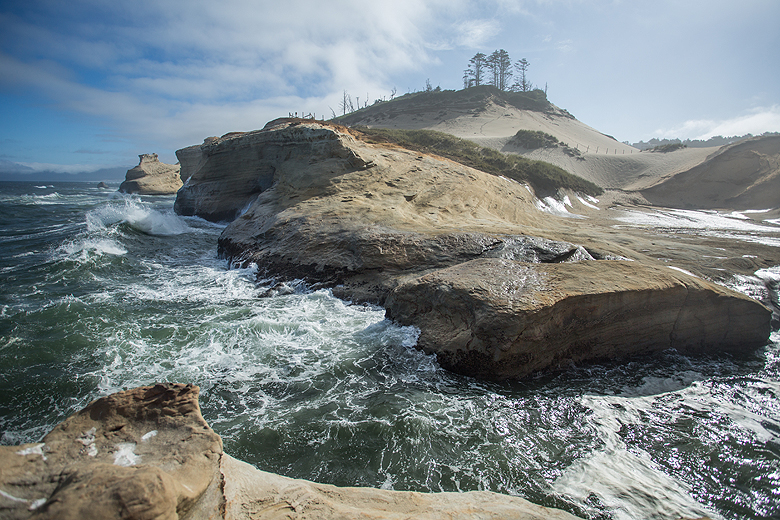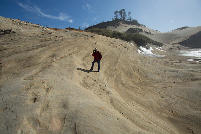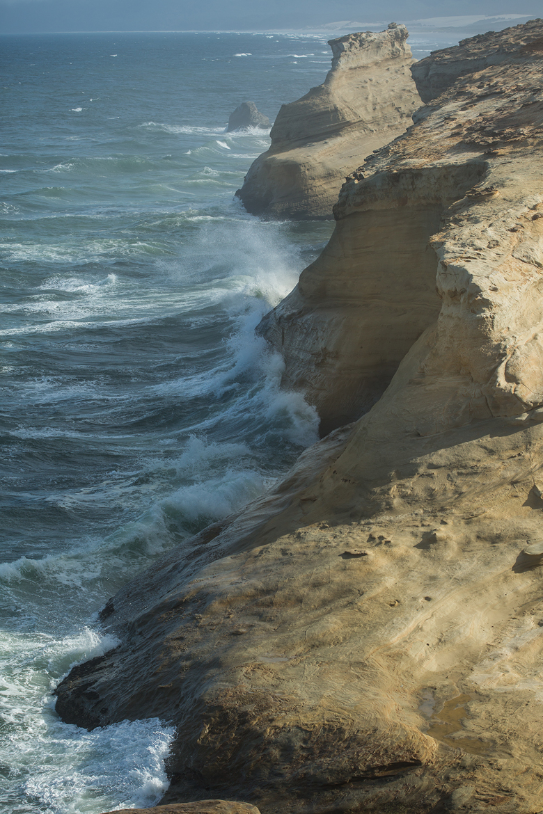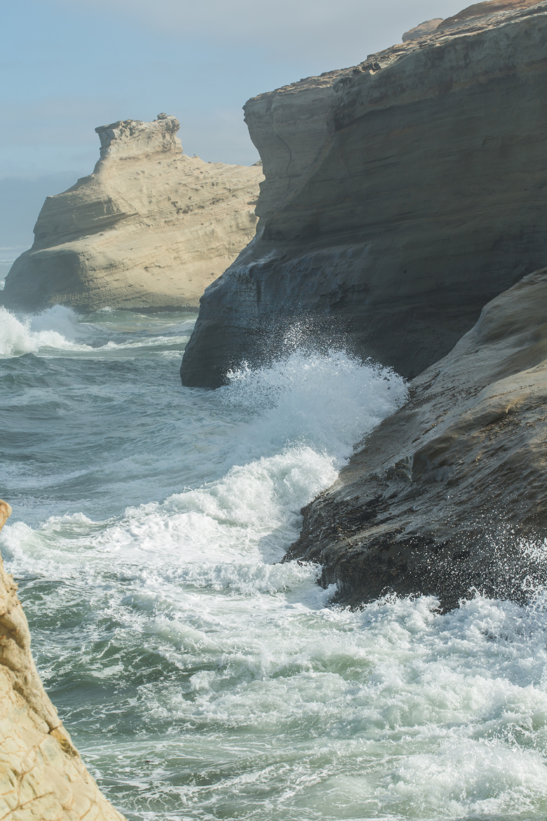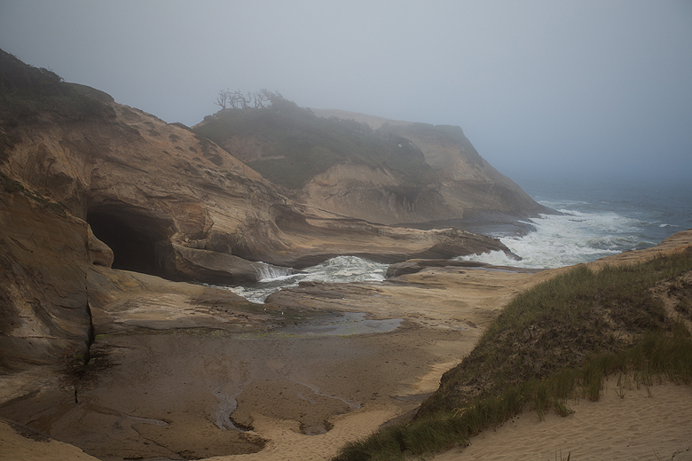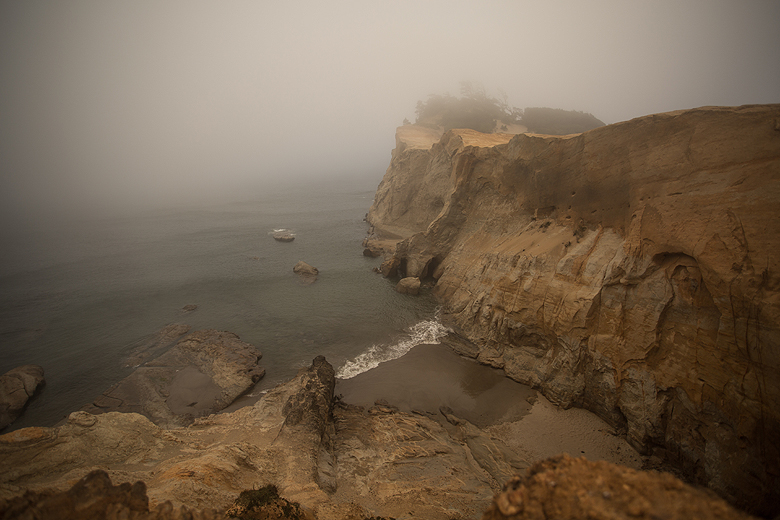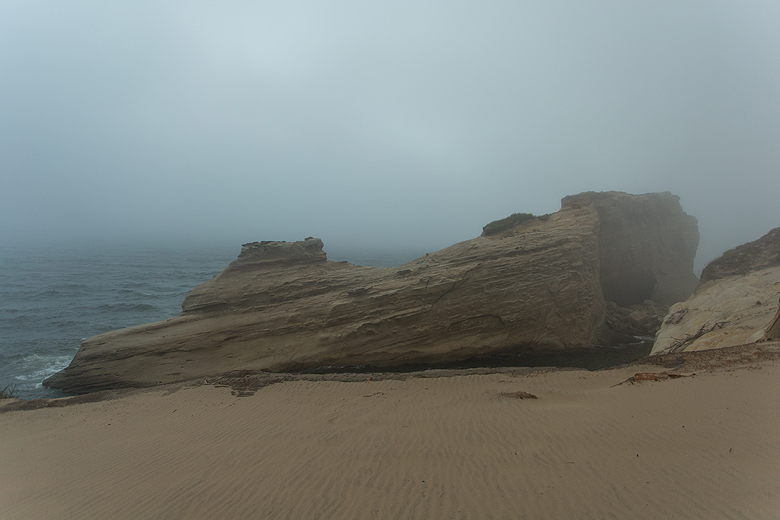Cape Kiwanda is a photographer’s heaven. Which made it twice as annoying that the first time we went there, it was covered in an impermeable, pea souper of a fog.