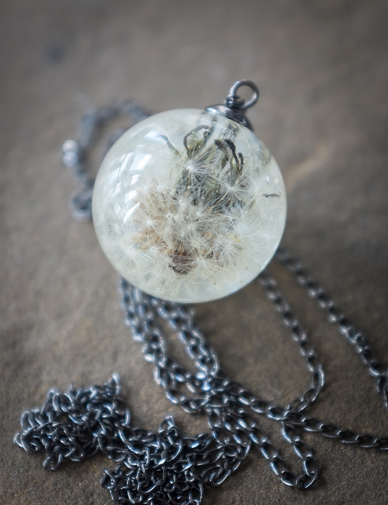 The second bonus project in Resin Jewelry, 2nd Edition is definitely the project I get asked about the most, and that’s how to preserve an entire dandelion head in resin without disturbing the shape, or the fluff.