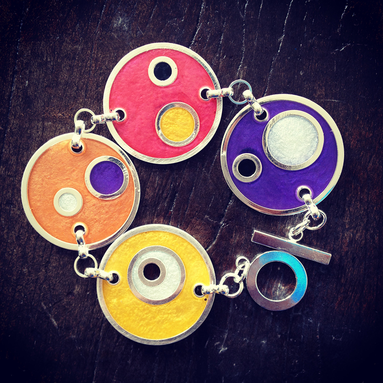 This project has nothing by dyed resin, no flowers, no inclusions. It just uses dye, resin and open rings to create a faux enamel look. Out of all the new material, I think this was the one I was proudest of because it’s so fun, so versatile and produces such bright, colourful results.