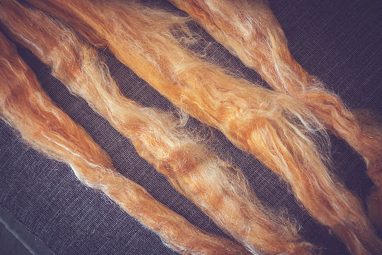 And these are some of the goodies that Rayna and I pulled from a friends de-stash last spring. 4 identical batts (a little over 100g each) by an Etsy shop called Zauberzeug (45% Merino, 30%Silk, 20% nylon, 5% firestar). Here is the link to their original post. They don’t have a lot up there right now, but trolling through their past sales I found a batt called ‘Mint Chocolate’–if they ever make those again I definitely want one!