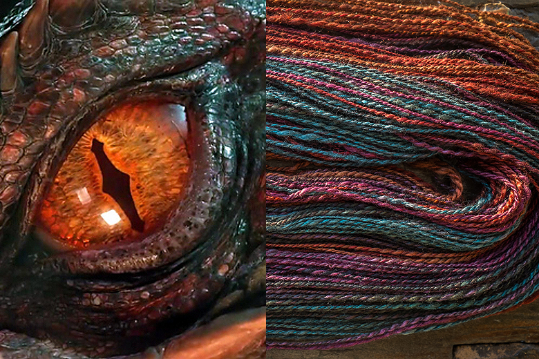 Further proof of the genius dyer at Inglenook fibres. Mother Macrina recently decided to shatter my fiber diet plans by releasing a series of batts inspired by the Hobbit. With a name like ‘Smaug, chiefest and greatest of calamities’ how could I resist? My nerdy little heart went all a flutter.