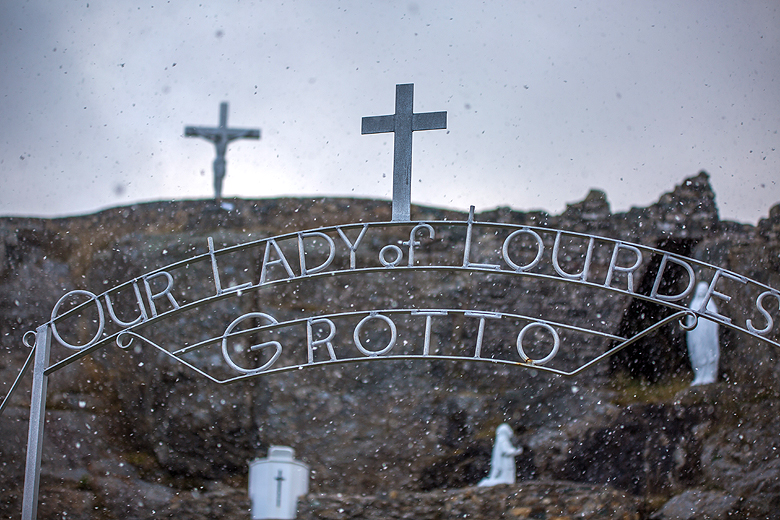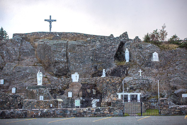 Our Lady of Lourdes Grotto is a religious shrine located outside of the parish church in Flatrock, founded in 1954 by Fr. William Sullivan after his return to the parish from Lourdes, France. Fr. Sullivan saw many similarities in the terrain in Lourdes to that of his church in Flatrock, and saw that it would be a great opportunity to take advantage of this land. It is to date the largest religious grotto east of Montreal and has been visited by Pope John Paul II on September 12, 1984 where it received a special blessing from His Holiness.