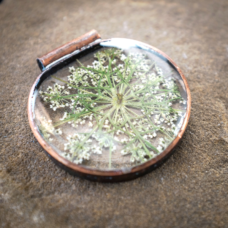 I thought I might take a break from photos of Newfoundland to show off some of my latest resin work. I harvested a lot of Queen Anne’s lace before their season was over, and kept them preserved.