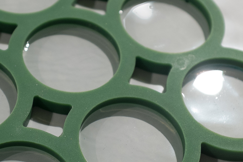 2. Mix your resin and pour a 2mm thick layer of resin into every circle.