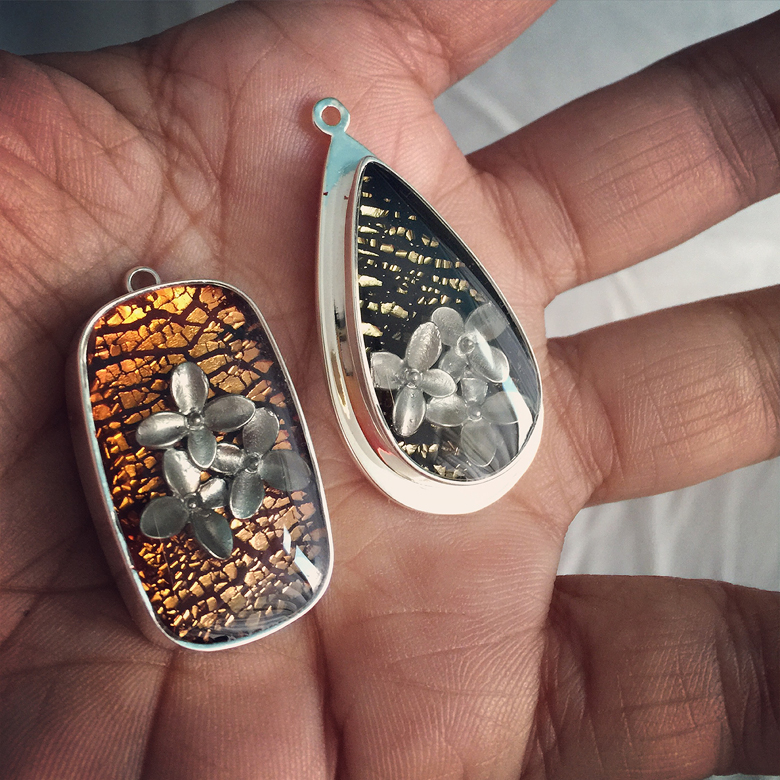 And these were made late last night. That’s polymer clay with gold leafing on top, metal findings and a beautiful, glossy coat of resin on top. I can’t wait til these are fully cured! I am into production mode now for the one actual art show we do in the summer. It’s months away yet, but I want to use the winter to stock up :)