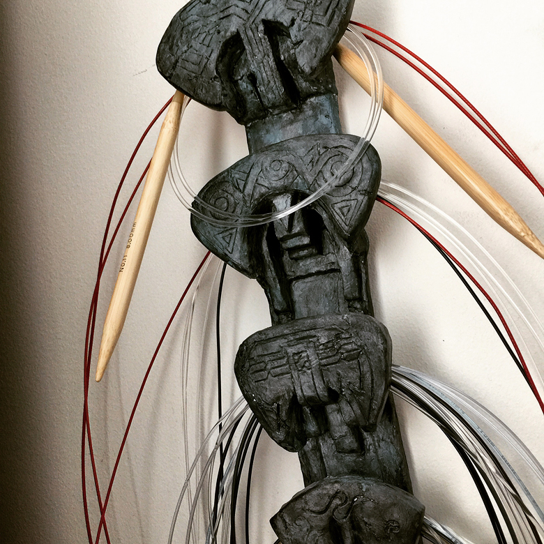 This is my new circular needle holder. Tito made it for me out of polymer clay, and took pains to make it look like carved stone. I think he’s done a very convincing job of creating a middle earth needle holder straight out of Rivendell :) I’m so lucky to have someone that not only supports my crafts, but makes cool things to go with them, and is just as crafty!
