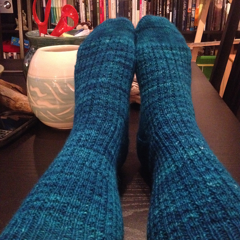 I finally picked them up again about a month ago, and raced through the end of the first sock. The second sock got onto the needles right away, and (A Christmas Miracle!) were finished and blocked by Christmas eve, ready for me to give to my mama.