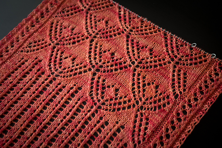 I’ve been working on a new design for a few weeks now, and I think I’ve finally nailed it. Designing is a long process, with countless test knits, chart updates, and fiber tests, but it’s also very gratifying when you finally get there. This is my latest piece, designed to be knit both as a shawl and a generous wrap.