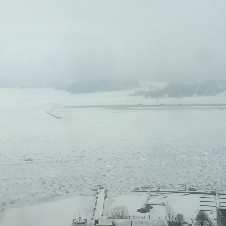 This pink one is Tanis Fiber Arts, Silver Lable Mulberry Silk in a colour called ‘Papaya’. I am normally a blue-green person all the way, but this is the colour of the hour for me. The silver label base is luxurious, and happily, it comes in a 500 yard skein. It’s hot, and tropical, saturated and shiny, and you can imagine how welcome that is when the view outside at the moment looks like this: