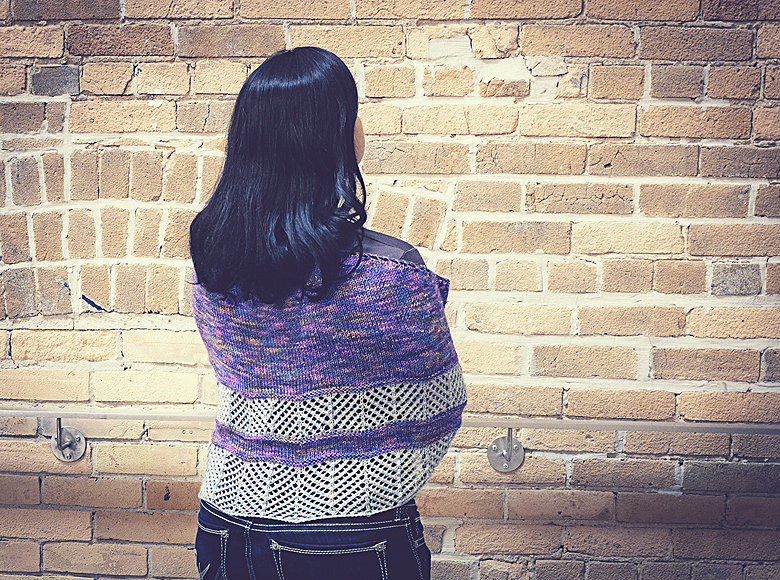 Definitely not shawlette-sized, it covers my entire back nicely. It’s just waiting for the right weather, a sunny patio, and a nice sundress.