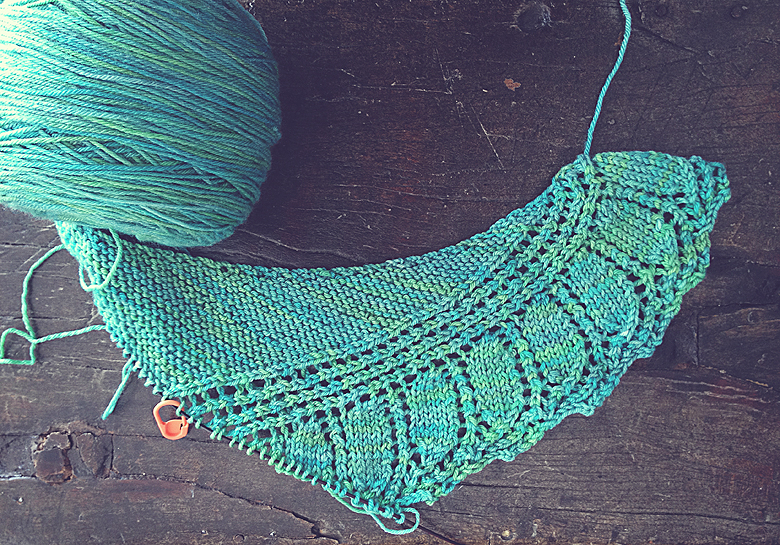 This yarn began its life as an Etsy OOAK called ‘Green Sea’ that I snagged from a Tanis Fiber Arts Etsy update. Not only was it a OOAK colour, but it was some kind of super special base with silk, and I think cashmere in it. So unsurprisingly, I hoarded it for the better part of a year before doing anything.