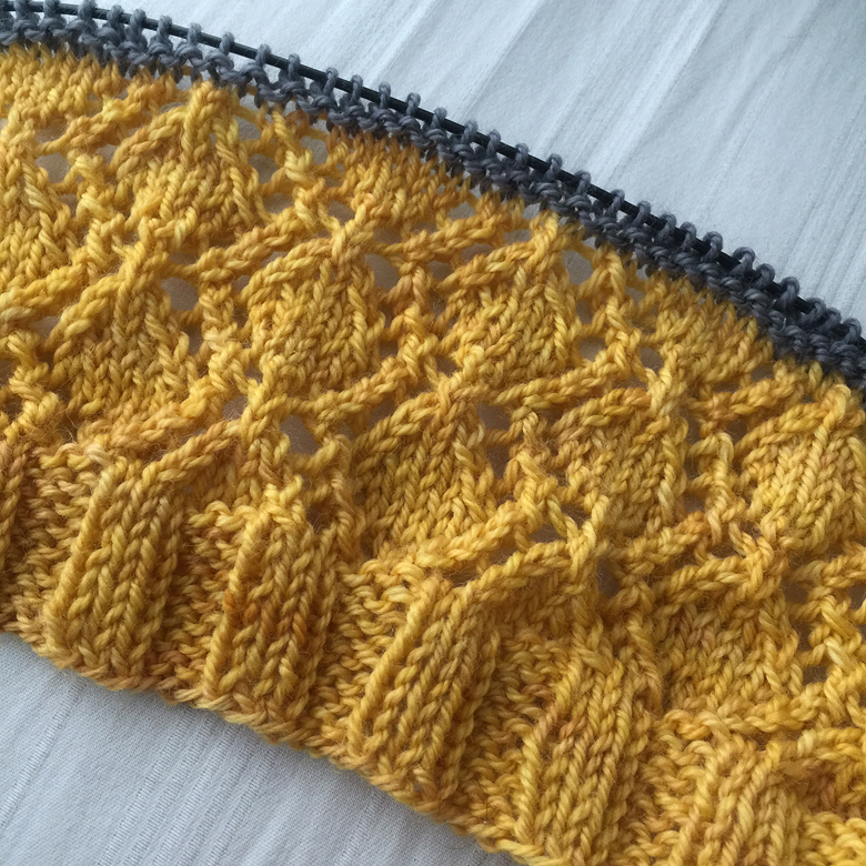 These are only sneak peeks right now because the design is not ready yet. I need to rip back the front to where my neckline shaping begins because it’s slightly off-centre and I’ve had to tweak my charts. On the whole though, once it’s ready I believe it will be a very fast, comfortable knit with no complicated shaping or techniques.