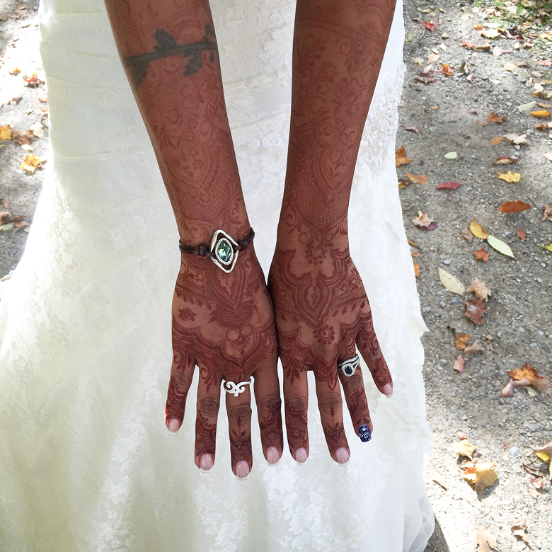 Oh, your wedding photos are lovely. Thank you for sharing them. Your henna work makes me want to make wire jewelry in a similar style and design. The rings on the mushroom was brilliant!!