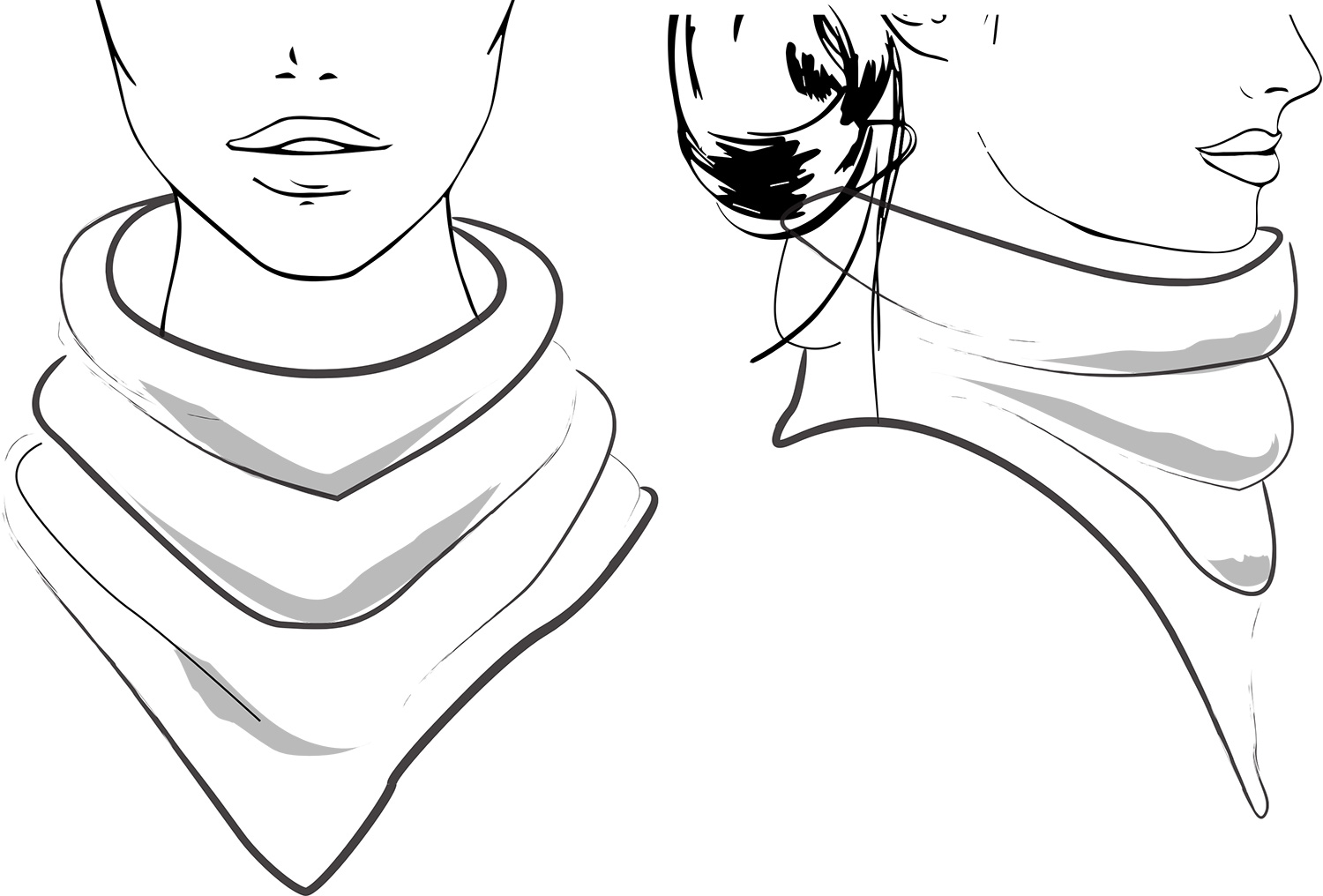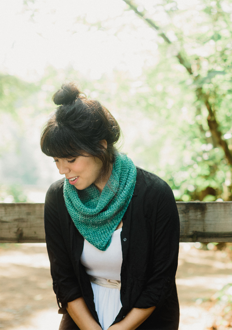 © SweetGeorgia Yarns / Josh Yong, 2015. Fall with SweetGeorgia Vol 1. Siesta began as a series of sketches, based on my love of bandana style cowls. I’m always looking to cover that gap that traditional cowls leave, just where the jacket closes. Also, not being particularly long of neck myself, I love the idea of a cowl that leaves bulk and warmth only where I need it, and has a slim line otherwise.