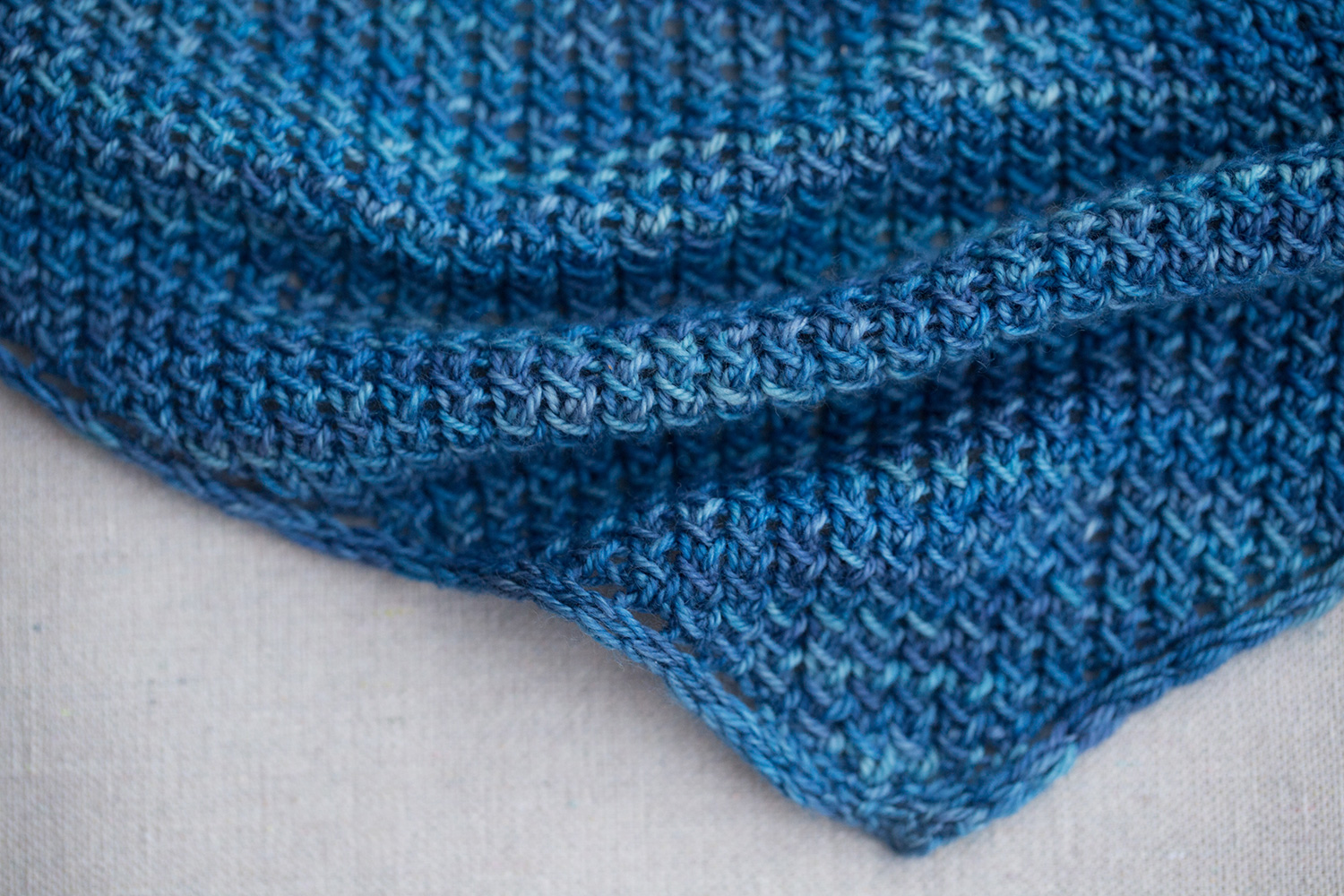 I played with a textural stitch that I really loved, and added a slipped stitch edging that resembles an i-cord when done, while keeping the edge from rolling.
