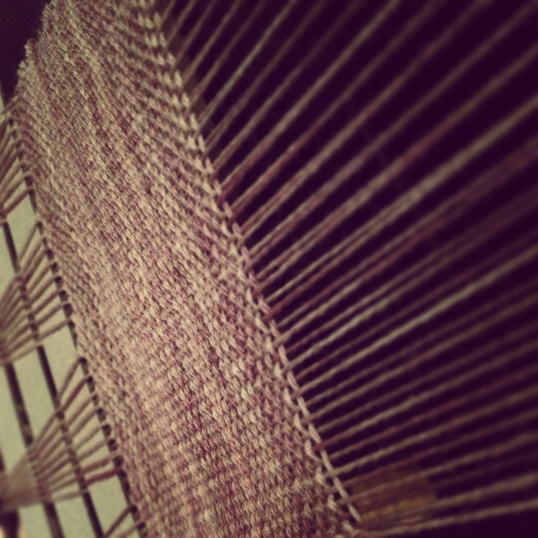And here is the work so far. I’m weaving something that will hopefully be wide enough to be a wrap, and also hopefully have more drape than my all-worsted- pieces did.