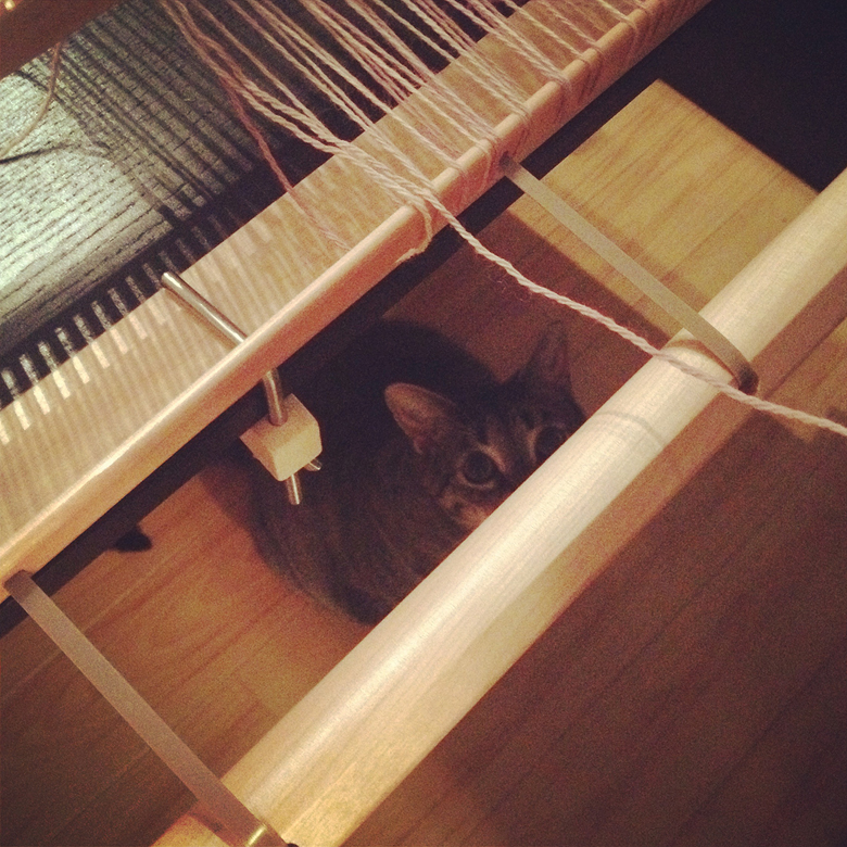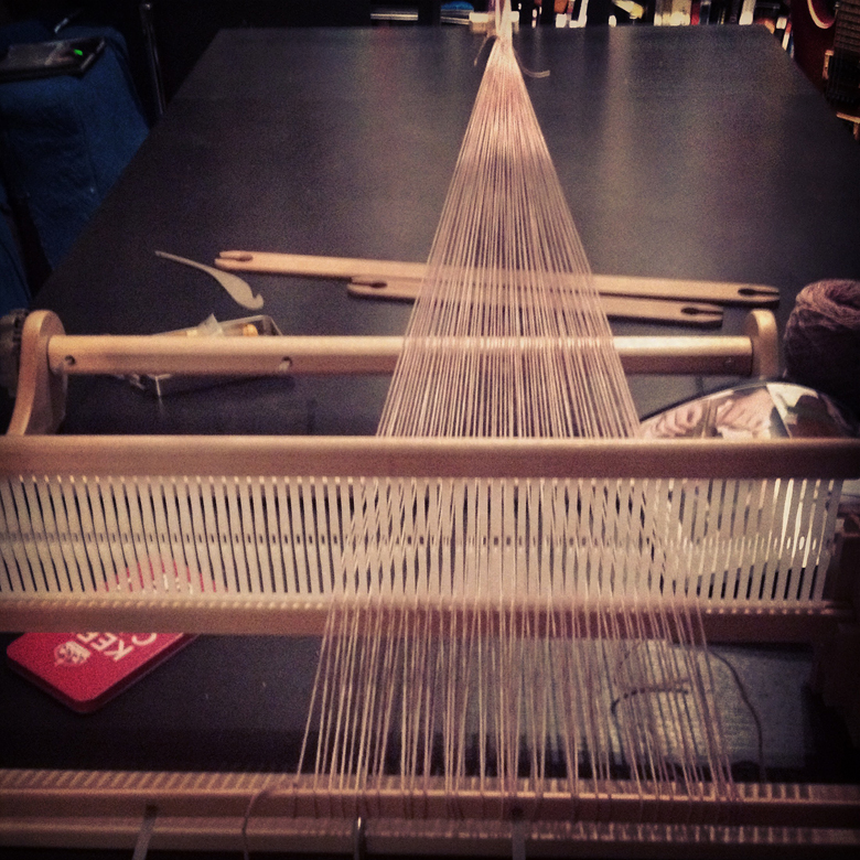 The loom is super easy to put together. I’ve never done any weaving at all, but the instructions were clear and easy. Getting your warp on (the vertical strands) is also pretty easy, and not as time-consuming as I’d feared.
