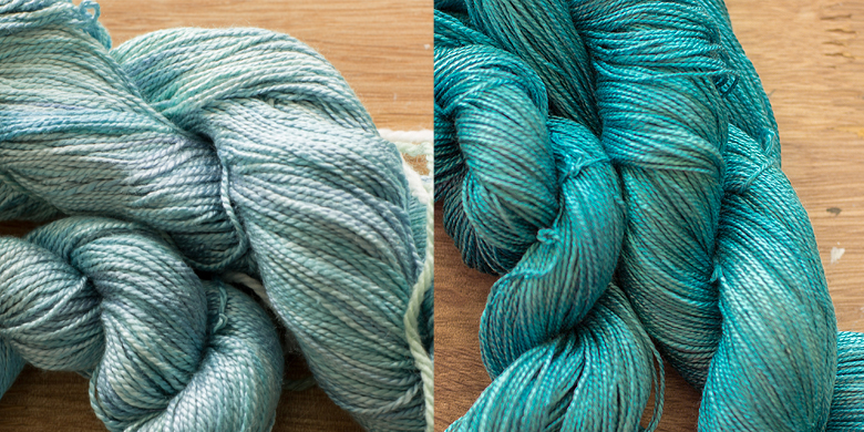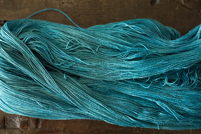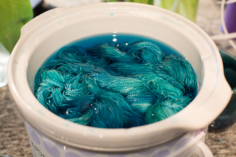 She cooked until the dye bath was totally exhausted. What was my formula? Sorry, a dollop of sapphire blue and a dollop of turquoise… that’s all I got.