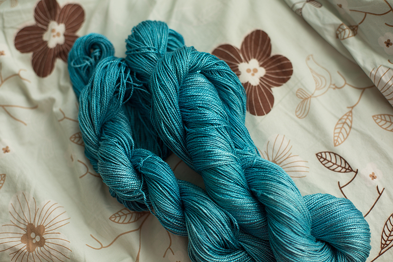 I saw this yarn on Etsy a few weeks ago that I absolutely had to have. Sure, it looked just like all my other s@!t, but it was coming from Europe and it was pure silk (and therefore it shouldn’t count against my moratorium on turquoise yarn) and I was dreaming of a beaded wedding shawl, so I bought it.