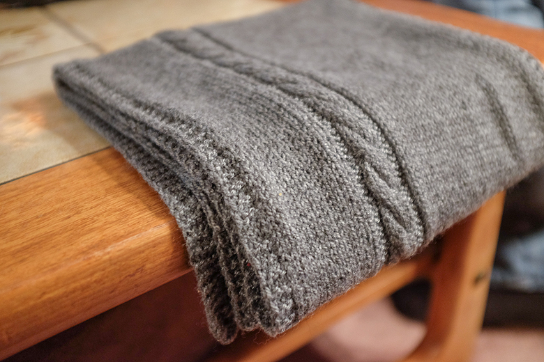 Daddy is not a scarf kinda guy, so it had to be classy. I wanted just enough detail to keep it interesting and masculine and keep me from dying of boredom, while simple enough that I could knit it on airplanes and on a cruise ship and (since it wasn’t done when I came home), during the gold medal hockey games ;)
