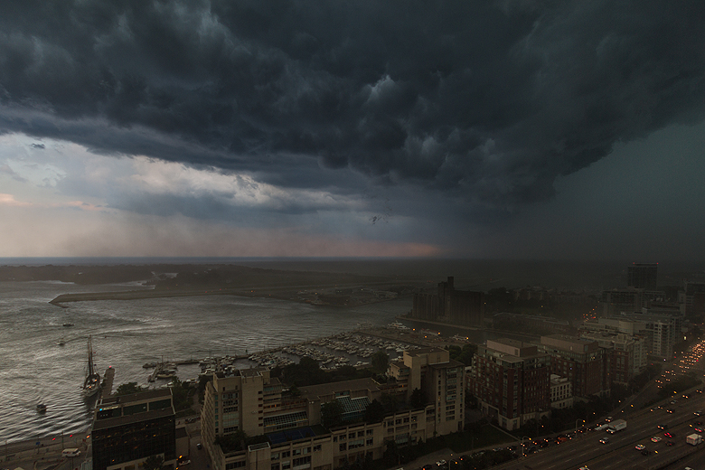 I just learned a little more about the strange clouds I photographed on Monday night after the thunderstorm in Toronto. Here’s what wikipedia has to say: